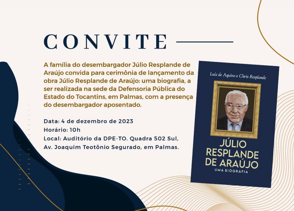 “Júlio Resplande de Araújo – Uma Biografia” é um livro que celebra a vida de um homem que, partindo de origens humildes em Goiás, usou a educação como alavanca para o sucesso. Escrito por Chris Resplande e Luiz de Aquino, a obra retrata a jornada de Júlio desde a infância até se tornar um influente jurista e político, culminando na sua contribuição fundamental para o desenvolvimento do Estado do Tocantins. O lançamento está marcado para 1º de dezembro no Tribunal de Justiça de Goiás, com uma sessão de autógrafos posterior na Defensoria Pública do Tocantins.