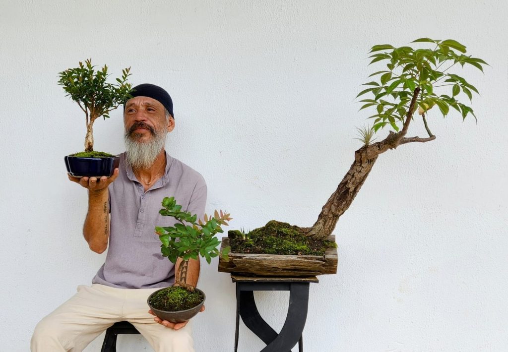 A primeira vez que assistiu ao sucesso do cinema, “Karatê Kid” (1984), Juarez Luz era um garoto, que ficou fascinado pela dedicação do Sr. Miyagi (Pat Morita) aos bonsais. Há cerca de 20 anos, aprendeu sozinho a cultivar suas próprias mini-árvores, o que o levou a técnicas pessoais e a um olhar muito sensível às plantas do cerrado.