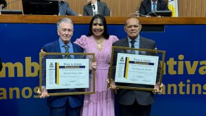 Nesta quinta-feira, 28, a Assembleia Legislativa do Tocantins (Aleto), entregou títulos de Cidadão Tocantinense ou Cidadão Benemérito Senador João Ribeiro para pessoas que contribuem significativamente para a construção e o