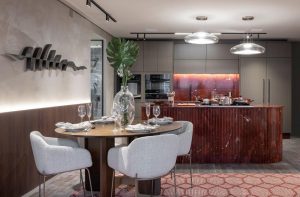 O “Loft Transcender”, assinado pela arquiteta Sabrina Lücke, destaca móveis Todeschini na cozinha, no closet com sala de banho integrado e no móvel bar. Nas...