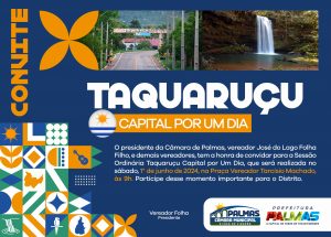 Neste sábado, 1º de junho, as sedes dos poderes Legislativo e Executivo de Palmas serão transferidas para o distrito de Taquaruçu, levando diversas ações e serviços para a comunidade local.