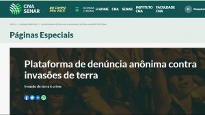A Confederação da Agricultura e Pecuária do Brasil (CNA) abre um canal de denúncia para os produtores rurais de todo o país informarem, de forma anônima, invasões de propriedades rurais.