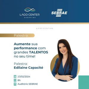 Evento oferece ideias para empresários sobre atração e retenção de talento Em parceria com o Lago Center, o Sebrae Tocantins realiza, na próxima sexta-feira, 23, a palestra “Aumente sua Performance