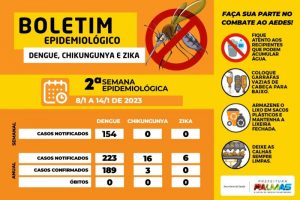 Na segunda semana epidemiológica do ano, que compreende o período de 8 a 14 de janeiro, Palmas teve o registro de 154 notificações suspeitas para dengue. Os dados são do