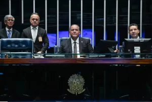 A Sessão Deliberativa Ordinária do Senado Federal, realizada nesta terça-feira, 25, foi conduzida pelo presidente em exercício da Casa e presidente do PL Tocantins, Eduardo Gomes. A reunião teve como