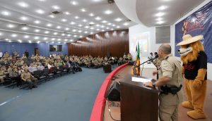 PMTO recebeu durante a cerimônia novas armas, drones, viaturas, quadriciclos e a doação de um terreno para a construção da nova sede da unidade militar O governador Wanderlei Barbosa acompanhado