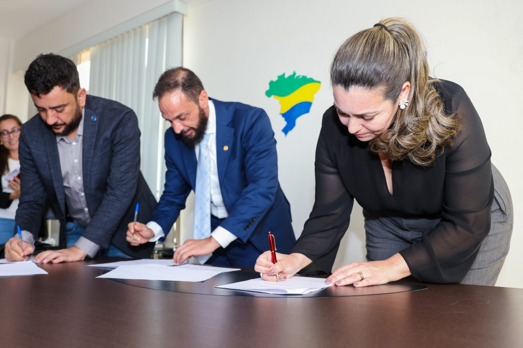 Nesta quarta-feira, 14, a prefeita de Palmas, Cinthia Ribeiro, participou da assinatura do ato de transferência de uma área doada pelo município à União Federal e repassada à Polícia Federal (PF), na sede do Secretaria de Patrimônio da União (SPU). O Projeto de Lei, que assegura esta doação, passou recentemente pela Câmara de Vereadores. “Este ato está garantido por lei. Para nós, é um prazer poder contribuir com a instalação definitiva de uma instituição tão importante quanto a Polícia Federal. Esta iniciativa mostra nosso reconhecimento a esta entidade,” comentou a prefeita.