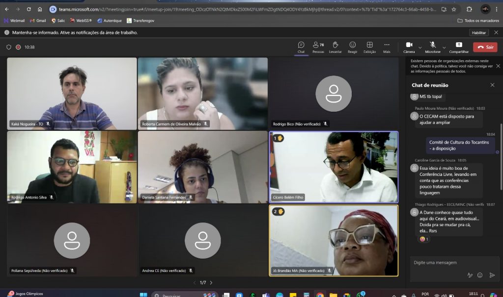 No encontro da última semana, o coordenador-geral do Comitê de Cultura no Tocantins, Kaká Nogueira, participou de reunião online que teve a proposta de discutir a construção do Plano de Diretrizes e Metas do Audiovisual Brasileiro, um documento de planejamento de longo prazo para a gestão de políticas públicas, que orienta as políticas audiovisuais estabelecidas pelo Ministério da Cultura, por meio do trabalho da Secretaria do Audiovisual (SAV) e da Agência Nacional do Cinema (Ancine).