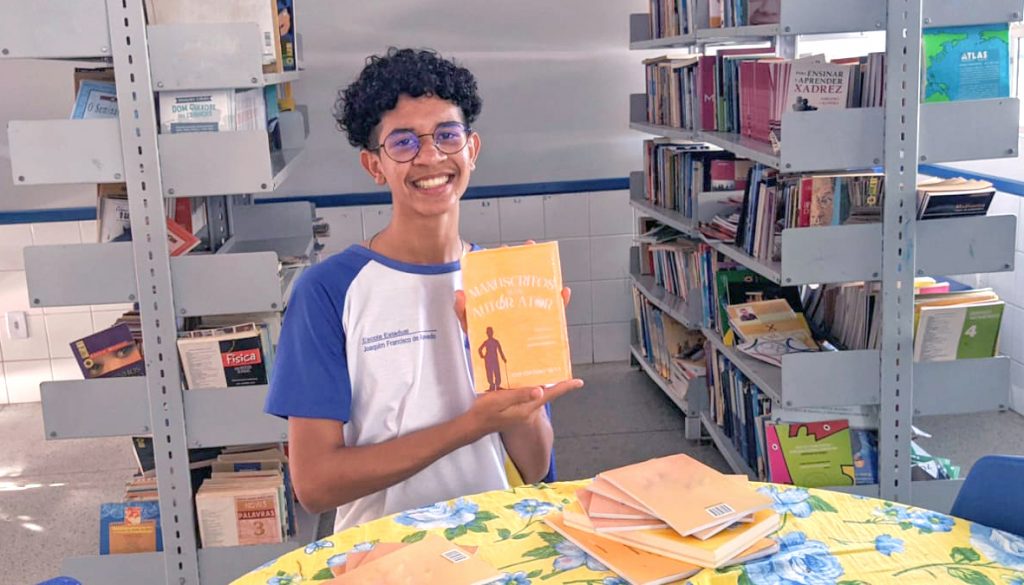O estudante Luiz Eduardo cursa a 2ª série do ensino médio na Escola Estadual Joaquim Francisco de Azevedo, localizada em Taipas, Tocantins. E sua paixão pela escrita começou com as suas participações na Olimpíada Brasileira de Língua Portuguesa – Escrevendo o Futuro. “Participar da olimpíada foi sem dúvida uma das melhores coisas que já me aconteceu. Ver a pluralidade de ideias e textos que podem ser criados, estar na presença de autoras reconhecidas nacionalmente, como Geni Guimarães, me fascinou. E ao perceber que pelas palavras eu poderia retratar meus sentimentos, não pensei duas vezes em pegar uma caneta, uma folha e começar a escrever”, frisou o aluno escritor.