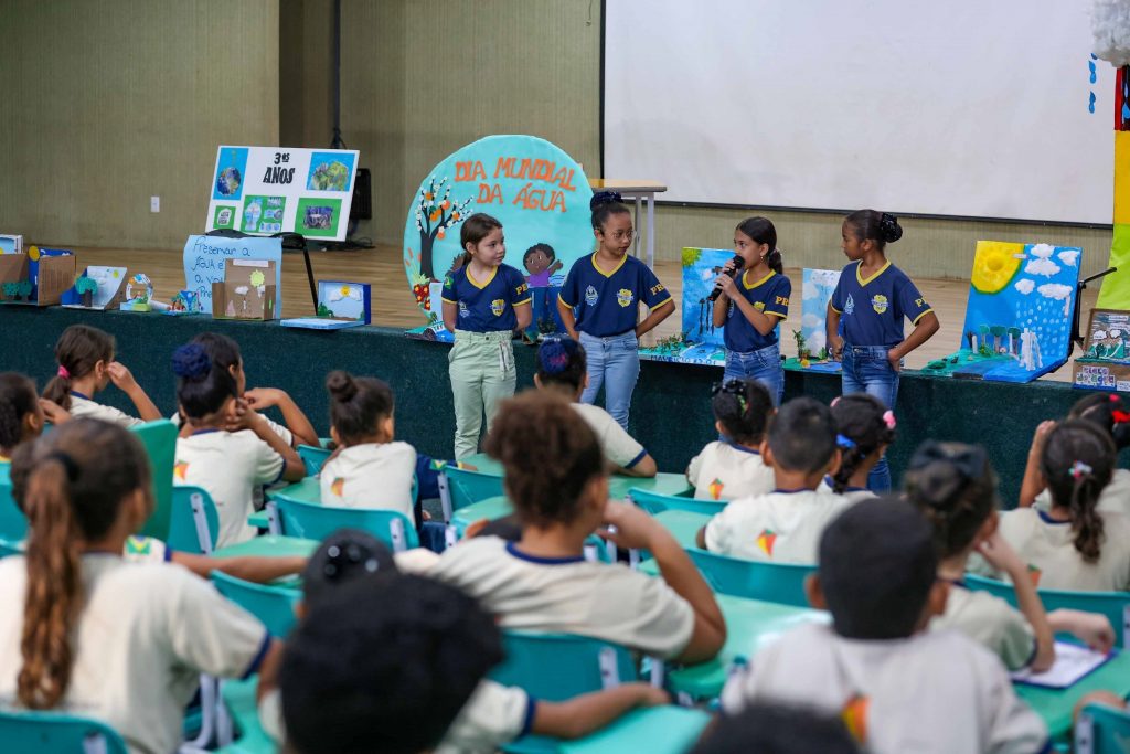 Em comemoração ao Dia Mundial da Água, celebrado em 22 de março, a Escola Municipal de Tempo Integral (ETI) Pe. Josimo Tavares, localizada na ACSU – NO 40 (antiga 301 Norte), está realizando uma série de atividades pedagógicas visando sensibilizar e conscientizar a comunidade escolar sobre a importância do uso e da preservação desse recurso natural que é primordial para a vida de todos os seres vivos da terra. Dentre as principais ações constam; produção de livros, confecção de maquetes e apresentações de poemas abordando a temática ‘A importância e a preservação da água’, desenvolvido pela unidade escolar.