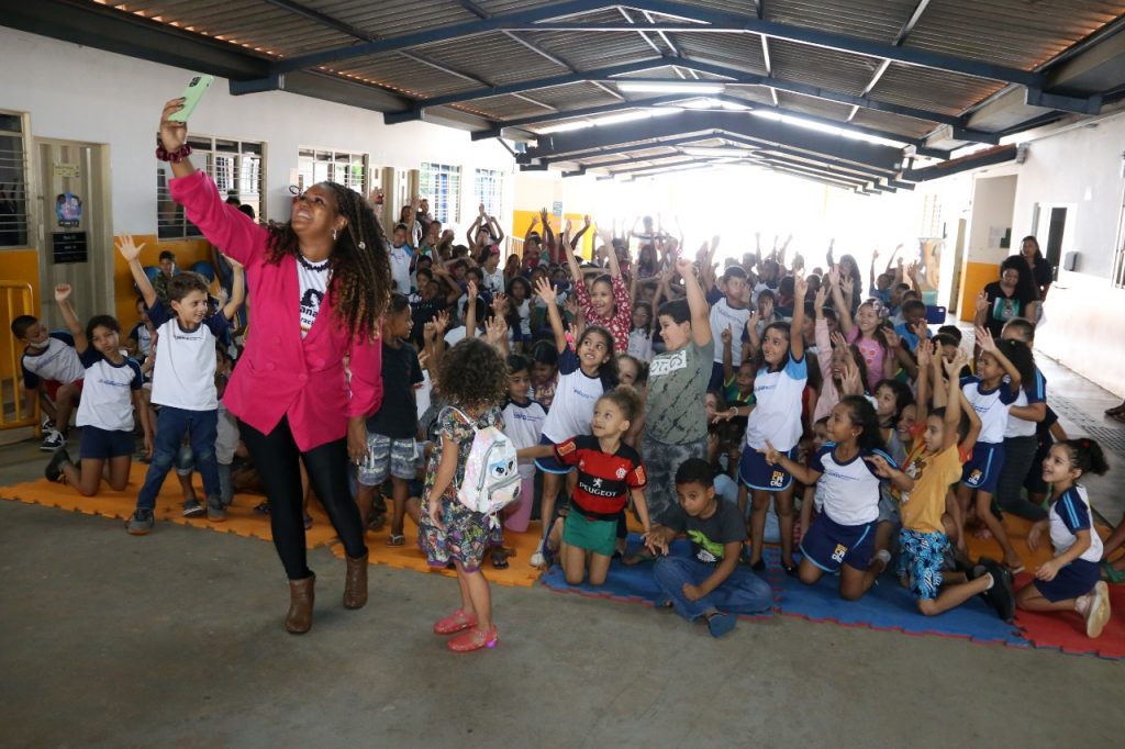 Como parte da programação das festividades do aniversário de Gurupi, alunos da Escola Municipal Professor Joel Ferreira Soares, que fica no setor Nova Fronteira, receberam a jornalista Maju Cotrim, com o projeto Caravana Tocantins Livre do Racismo.