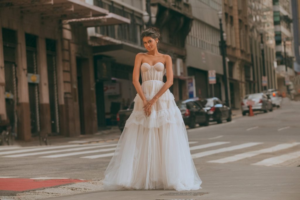 “Honória Para Casar” é uma linha noiva que se une à linha festa da estilista, mas que mantém o conceito, estilo e identidade da estilista. Para as noivas, uma estrutura mais volumosa, um vestido mais elaborado, mais rico em detalhes.