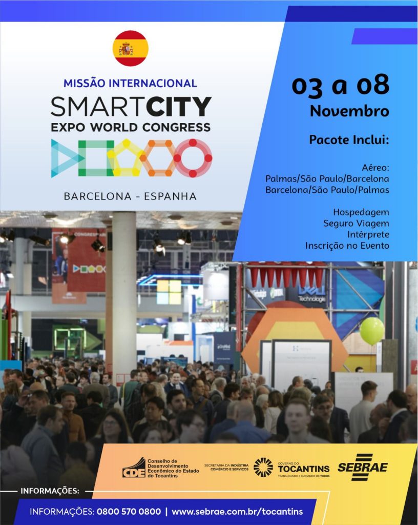 O Sebrae Tocantins está com as inscrições abertas para o Smart City Expo World Congress, um congresso global dedicado ao desenvolvimento de cidades inteligentes e sustentáveis. O evento ocorrerá em Barcelona, Espanha, de 03 a 08 de novembro e tem como objetivo promover a cooperação científica, tecnológica e empresarial entre a região da Catalunha e o Brasil.