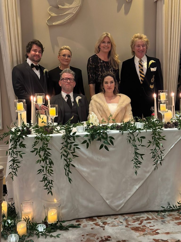 A cerimônia e o jantar foram reservados apenas aos amigos mais íntimos. Ivan é médico do casal e se tornou um grande amigo. David Palmer é baterista da banda de Rod Stewart. “O Rod é uma lenda para nós. Sempre o admiramos e escutamos muito em casa e hoje o admiramos ainda mais pelo seu carisma e simpatia. Ele adora o Brasil, seu recorde de público foi nas turnês pelo Brasil. Rio de Janeiro é sua cidade favorita”, diz Ivan Rollemberg, médico e amigo dos noivos.