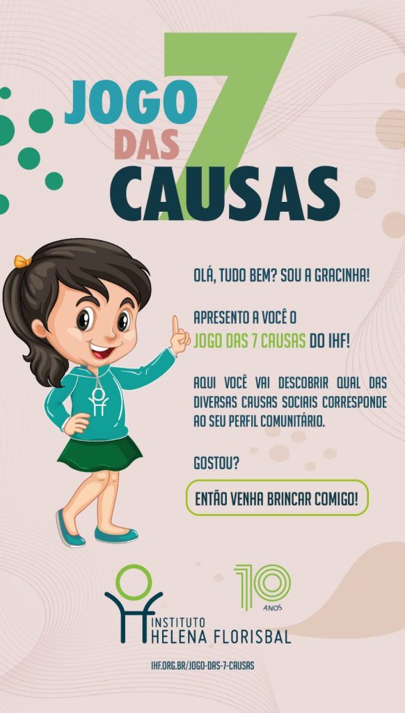 José Francisco Queiroz, diretor executivo do IHF, comenta: “O Jogo das 7 Causas é uma maneira lúdica e envolvente de fazer as pessoas refletirem sobre suas afinidades com as causas sociais. Ao mesmo tempo, oferece uma plataforma para que nosso instituto se torne ainda mais conhecido e alcance um público mais amplo”.