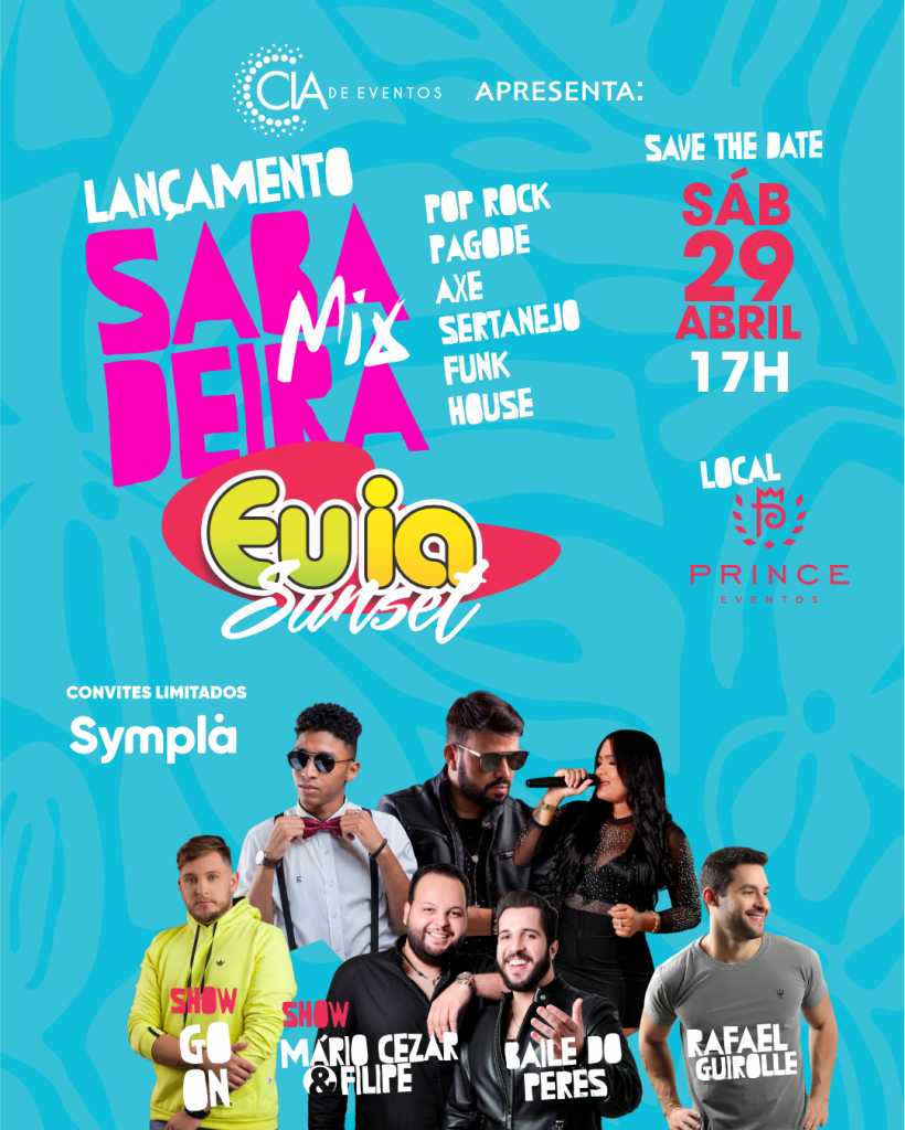 O evento está programado para o dia 29 de Abril de 2023, a partir das 17h, no Prince Eventos. Adquira seus ingressos agora mesmo pelo link https://www.sympla.com.br/sabadeira-mix-eu-ia-sunset__1942448?share_id=fn31m.