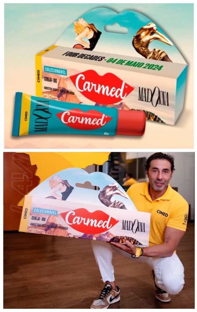 “A parceria com a Madonna é o primeiro passo para iniciarmos o processo de reconhecimento internacional da Cimed por meio do hidratante labial Carmed, que é hoje a nossa marca mais pop e fun, que nos permite transitar em diferentes segmentos e brincar com parcerias e narrativas diversas. Com essa parceria, o objetivo é nos aproximarmos do público internacional, considerando que se trata de uma artista que transita por diversas gerações, além de ser reconhecida no mundo inteiro, com uma carreira brilhante de 50 anos. Era exatamente a conexão que precisávamos para mostrar a nossa marca para o mundo”, conta João Adibe Marques, presidente da Cimed.