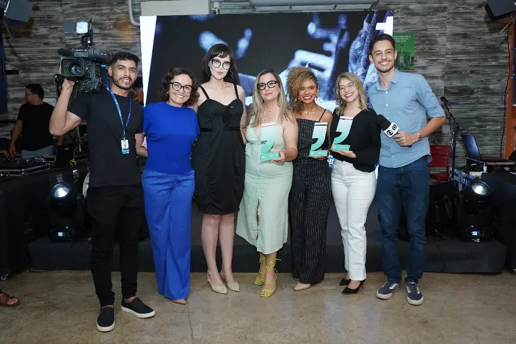Vencedores do Prêmio Sebrae de Jornalismo do Tocantins posam durante a cerimônia de premiação.