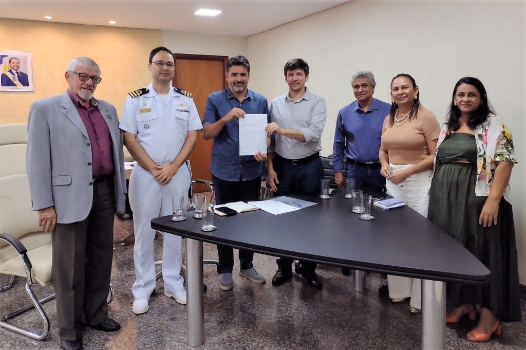 O secretário do Meio Ambiente e Recursos Hídricos (Semarh), Marcello Lelis, recebeu nesta quinta-feira, 30, o comandante da capitania Fluvial Araguaia-Tocantins, Artur Roberto Quirino da Silva, acompanhado de representantes do Conselho de Turismo da Fecomércio (Cetur), Associação Brasileira de Jornalistas de Turismo (Abrajet) e da Sociedade Amigos da Marinha do Tocantins (Soamar). Durante o encontro foi apresentada a Carta Batimétrica e a proposta de sinalização para o Lago de Palmas.