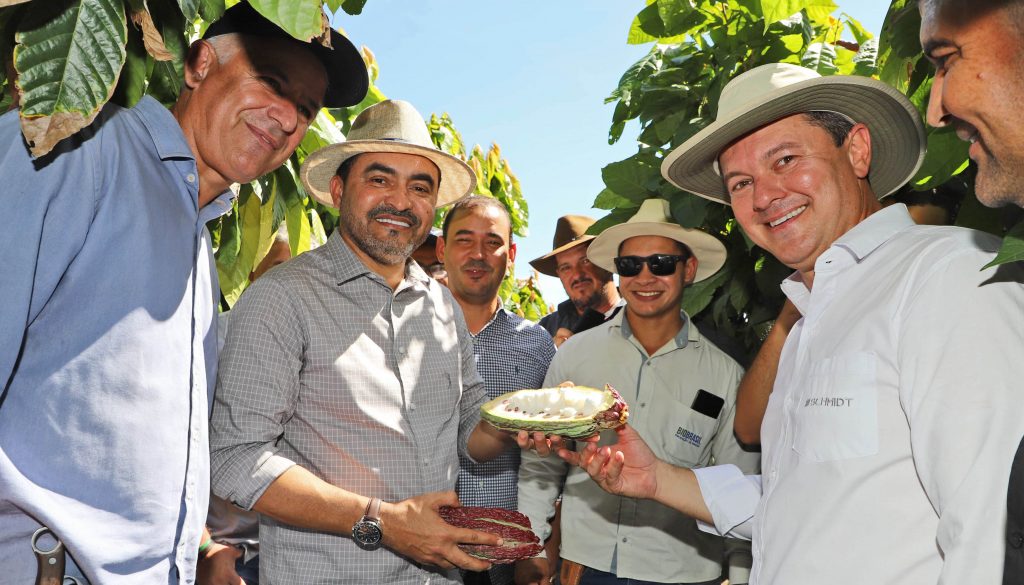O governador do Tocantins, Wanderlei Barbosa, esteve nesta segunda-feira, 25, no estado da Bahia para uma visita técnica junto aos profissionais da BioBrasil Produção de Mudas, uma empresa do grupo Schmidt. O objetivo era avaliar métodos de cultivo de cacau com o intuito de trazer para o Estado do Tocantins mecanismos e tecnologias que viabilizem a produção do fruto na região, com foco especial no pequeno e médio produtor rural.