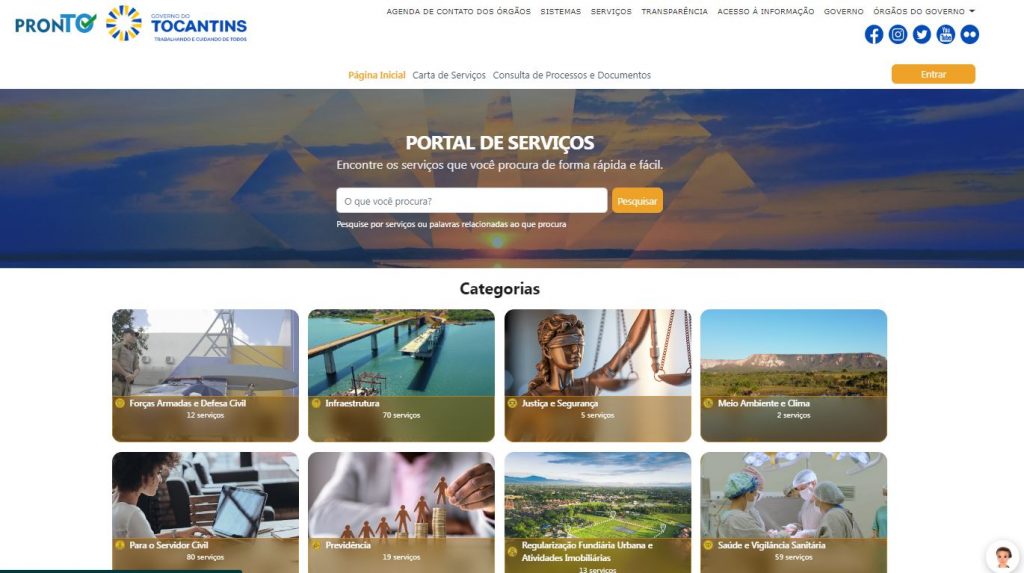 O novo portal de serviços digitais traz uma revolução na interação dos cidadãos com o Governo do Tocantins, disponibilizando no portal mais de 400 serviços digitais. O acesso aos serviços públicos foi simplificado com a autenticação por meio de Login Único do portal de serviços ou acesso por meio do portal do Governo Federal: Gov.br, tornando o processo mais eficiente e conveniente.