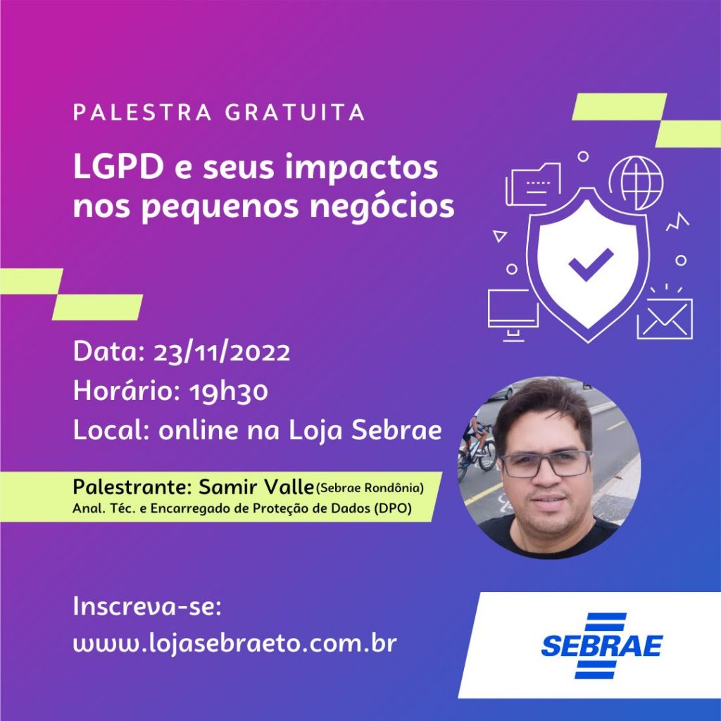O seminário será ministrado pelo analista e encarregado do sistema de dados do Sebrae Rondônia, Samir Valle. A palestra esclarecerá o que é LGPD, sua aplicabilidade, efeitos, objetivos, complicações legais, direitos e categorias no que se refere a dados, princípios, impactos e afins.