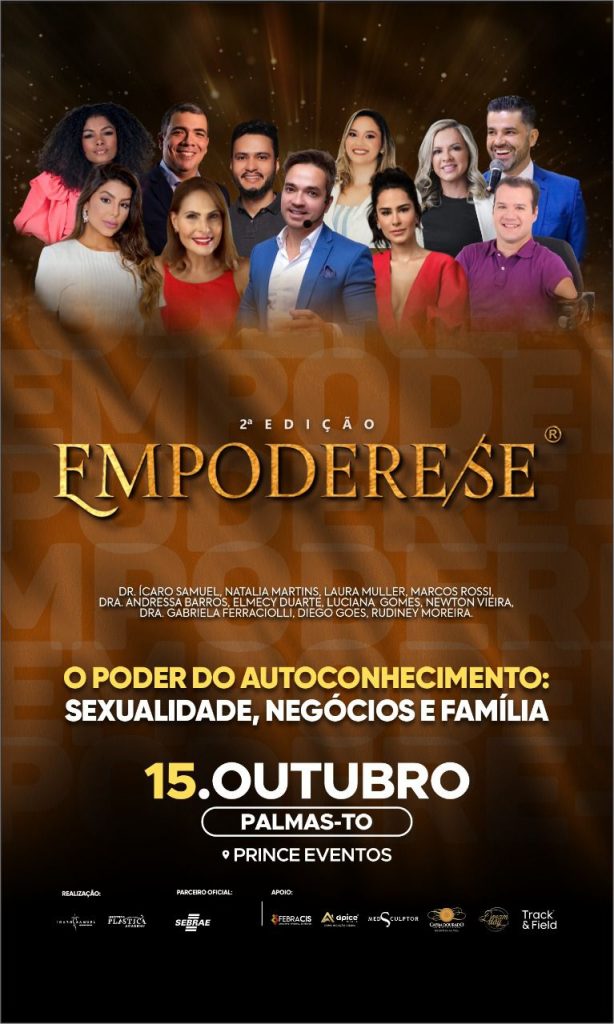 Palmas terá um sábado diferente neste dia 15 de outubro, e as pessoas que buscam ser melhores poderão conhecer, ouvir e aprender muitas histórias e ferramentas de superação, sucesso e vitória no Evento Empodere-se, que acontecerá de 8 às 21:30 horas, no Prince Eventos.