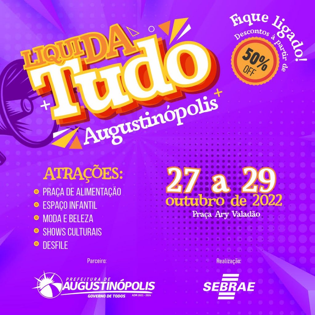 Cerca de 20 lojistas da área de moda e beleza de Augustinópolis terão a oportunidade de expor e comercializar seus produtos no maior evento do nicho que ocorre no município, o Liquida Augustinópolis. Neste ano, o evento será nos dias 27, 28 e 29 de outubro, na Praça Ary Valadão, a partir das 16 horas. O feirão é uma realização do Sebrae em parceria com a Prefeitura de Augustinópolis.