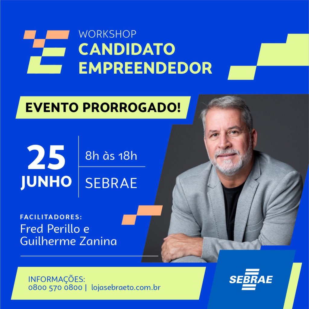 O workshop “Candidato Empreendedor” ocorrerá em nova data. O evento, previsto para esta terça-feira, 04, agora será realizado no próximo dia 25. A iniciativa, proposta pelo Sebrae Tocantins, tem o objetivo de promover o posicionamento dos gestores à defesa da pauta dos pequenos negócios nos municípios. As inscrições podem ser feitas até o dia 24 de junho, no site da instituição no ttps://sebrae.com.br/sites/ PortalSebrae/ufs/to?codUf=24.