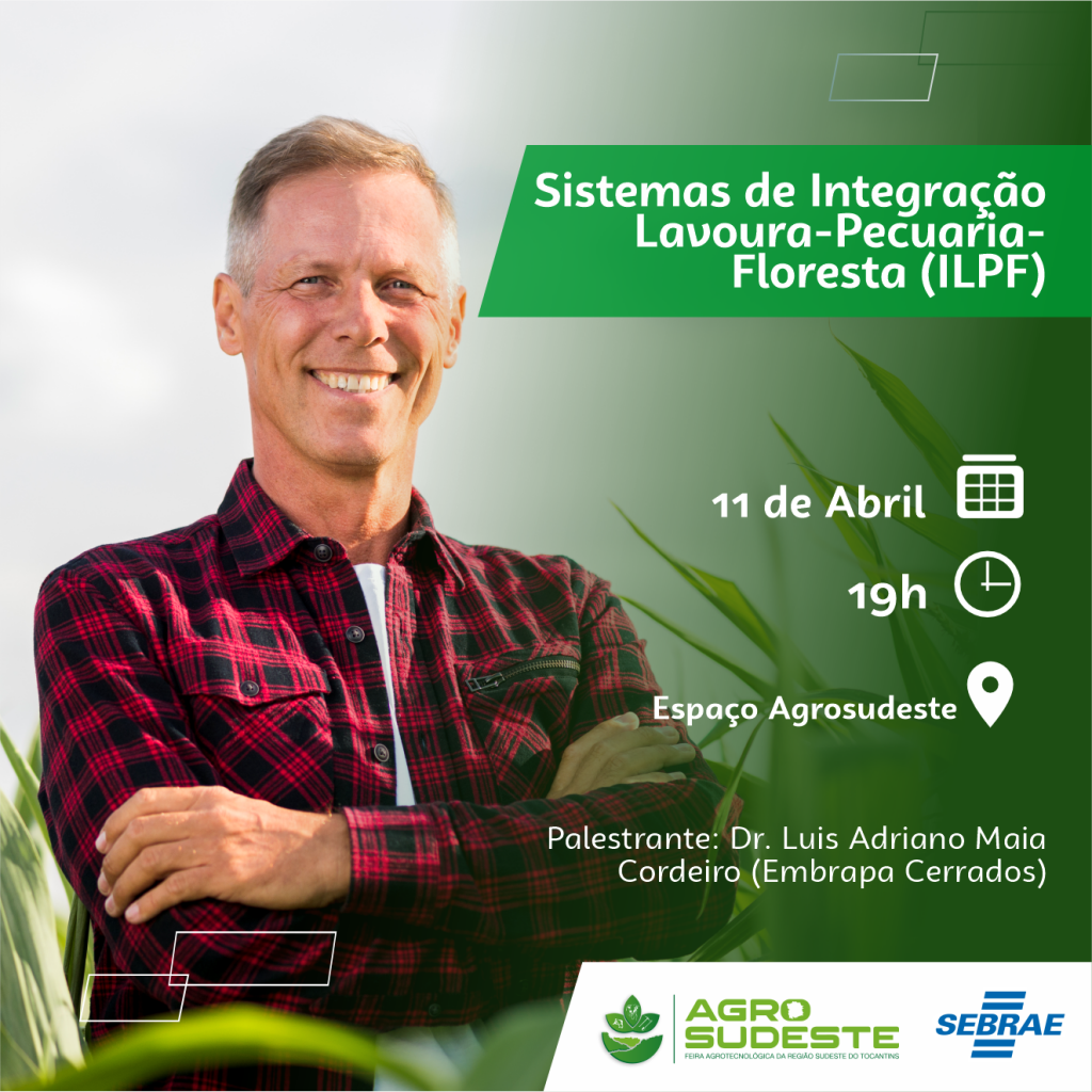 O Sebrae Tocantins participa da 8º Feira Agrotecnológica do Sudeste, AgroSudeste, nos dias 10 à 13 de Abril no munícipio de Almas, cidade localizada a 296 km de Palmas. O objetivo do evento é conscientizar os produtores da região sobre a adoção de tecnologias sustentáveis na bovinocultura, horticultura, fruticultura, produção de grandes culturas, avicultura e piscicultura. Isso será feito por meio de dias de campo, palestras e exposições de maquinários agrícolas, aspirando melhorar os indicadores de desenvolvimento sustentável local.