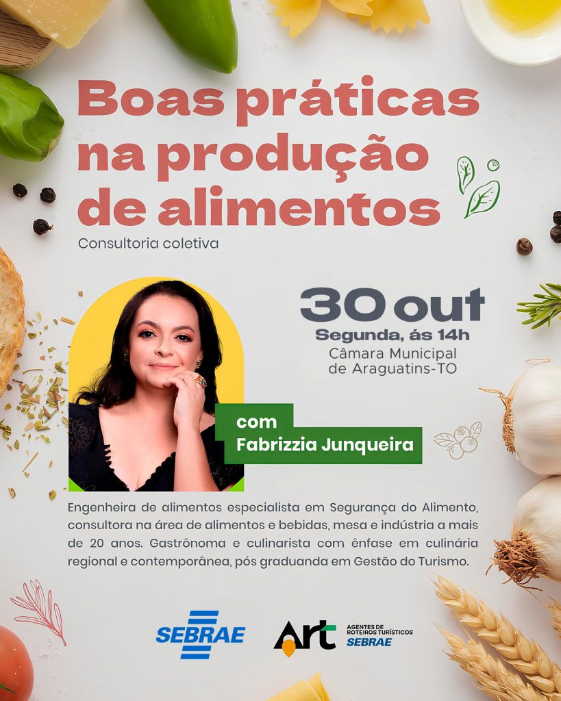 Como parte das estratégias para construção da Rota Gastronômica do Bico do Papagaio, o Sebrae Tocantins realiza na próxima segunda-feira, 30, a partir das 14 horas, na Câmara Municipal, em Araguatins, extremo norte do Estado, o curso Boas Práticas na Produção de Alimentos.