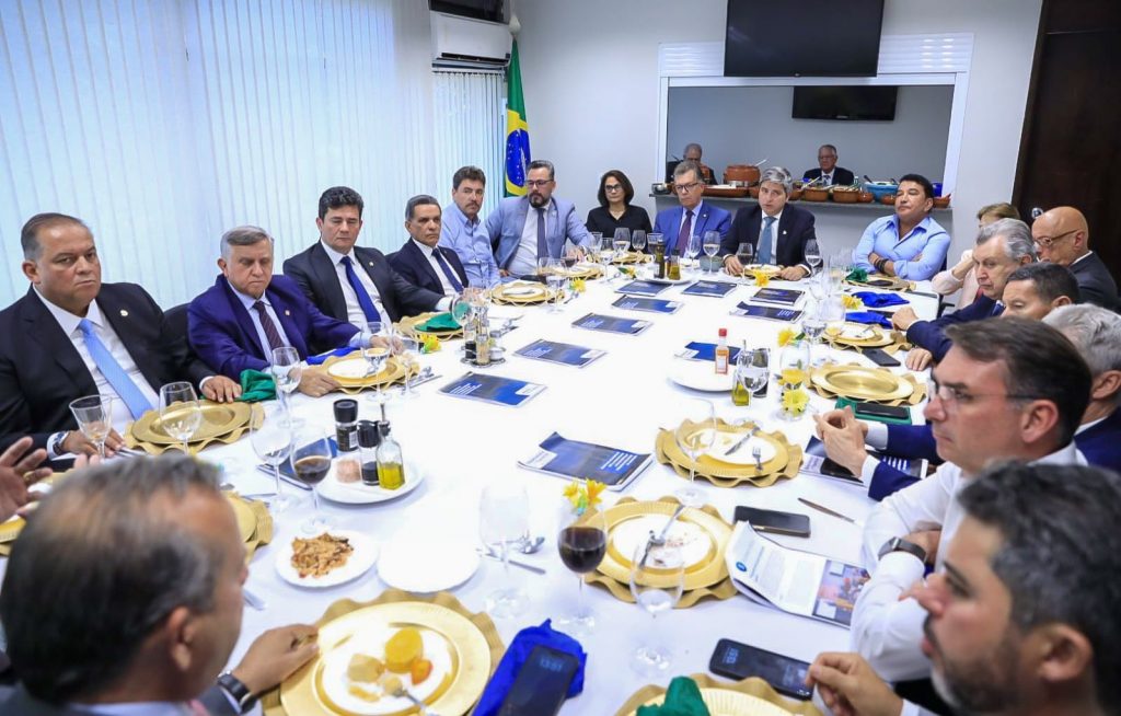 O vice-presidente do Senado e presidente do PL Tocantins, senador Eduardo Gomes, participou nesta terça-feira, 18, do tradicional almoço do bloco Vanguarda do Senado Federal, em Brasília (DF), que contou com a presença do ex-presidente Jair Bolsonaro. Durante o encontro, os parlamentares discutiram a pauta legislativa e a atuação da oposição no Congresso Nacional.