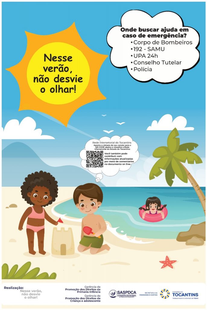 Promovida pela Secretaria da Cidadania e Justiça (Seciju), através das Gerências de Promoção dos Direitos da Primeira Infância e de Promoção dos Direitos da Criança e do Adolescente, e em parceria com o SEST/SENAT, a campanha percorre as praias tocantinenses, levando orientações e realizando blitzes informativas. A iniciativa inclui a distribuição de materiais educativos sobre cuidados e prevenção contra a violação de direitos de crianças e adolescentes, direcionados a pais, comerciantes, visitantes e turistas.