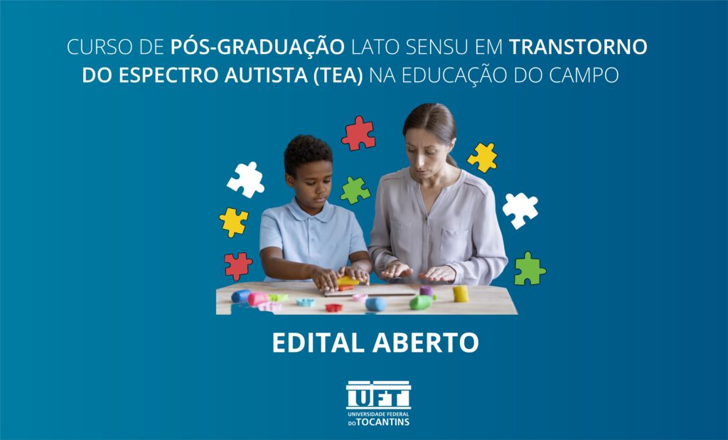 A Universidade Federal do Tocantins (UFT), por meio da Pró-Reitoria de Pesquisa e Pós-Graduação (Propesq) e do Instituto de Pesquisa e Extensão de Desenvolvimento Regional do Centro Norte Brasileiro (Ipex-Regional), está com inscrições abertas para o curso de Pós-Graduação Lato Sensu em Transtorno do Espectro Autista na Educação do Campo.